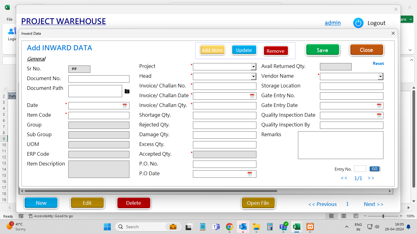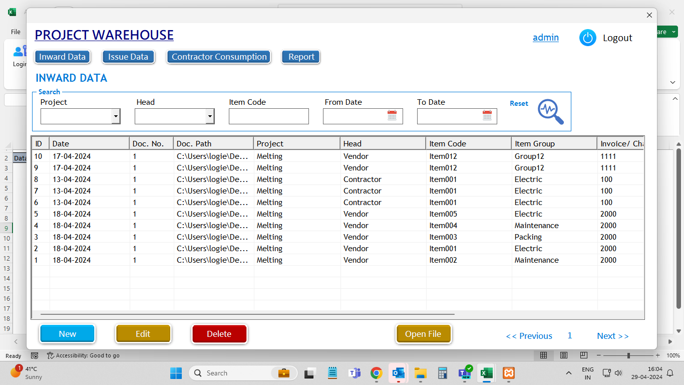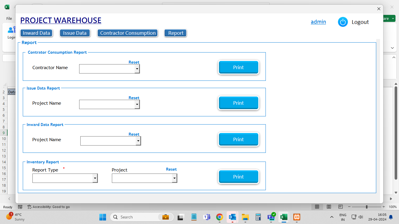 We have developed a purely excel based tool for inventory management on shop floors. The tool allows our client to manage inventory distribution b/w stores, contractors and consumption. They can upload inventory data for vendors in bulk and can control the dropdown details as well.