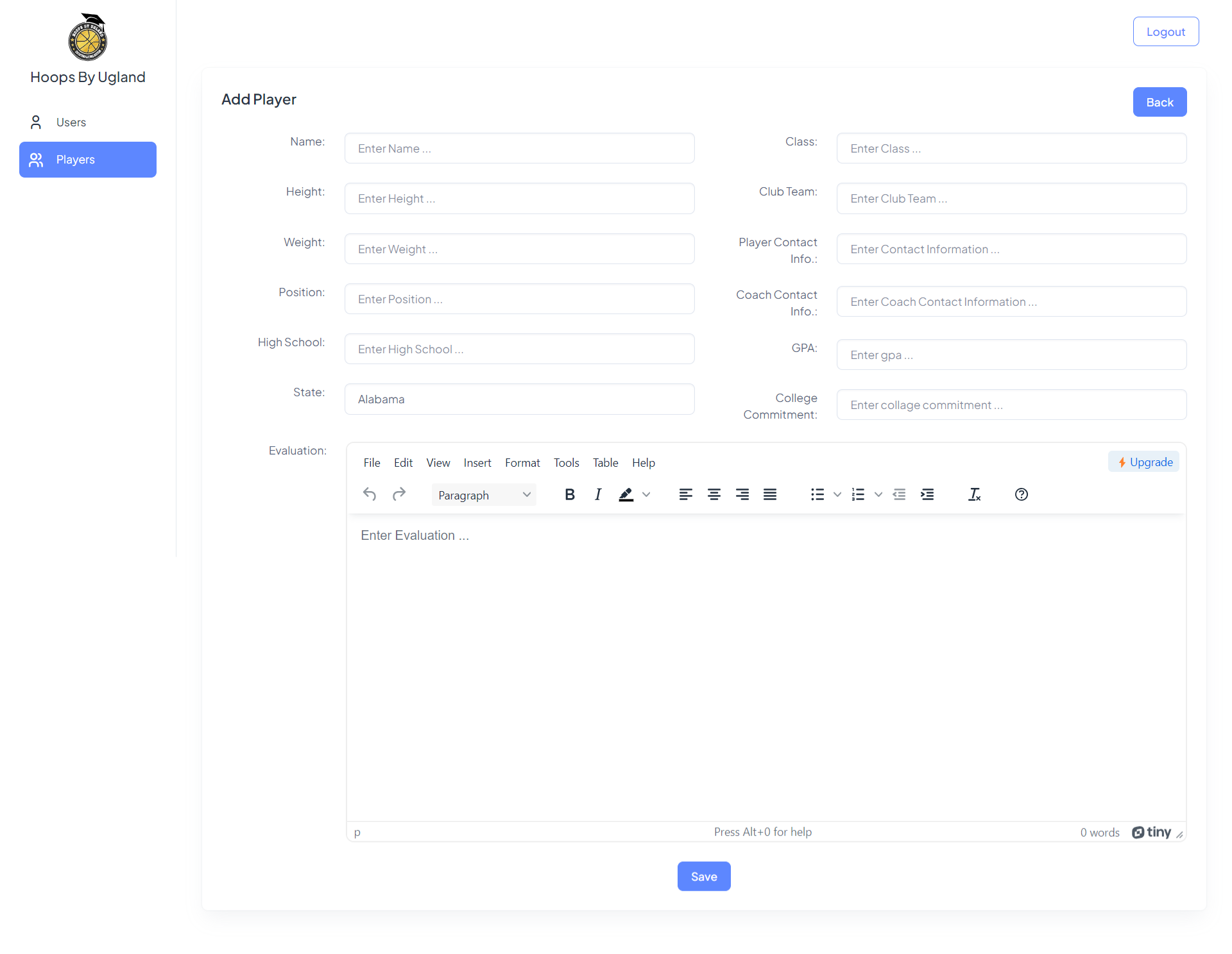 A portal to allow admin to store details about basket ball players at various levels and provide an insight into their playing abilities. The portal is built using Laravel and provides easy segregation of access b/w users and admin.