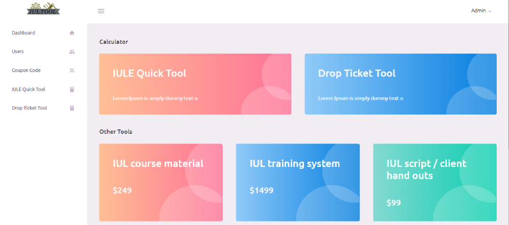 A custom website which provides insurance calculators for professionals in the insurance industry. It has a simple registration page and payment integration via stripe with many custom modules for admin to easily manage the portal.